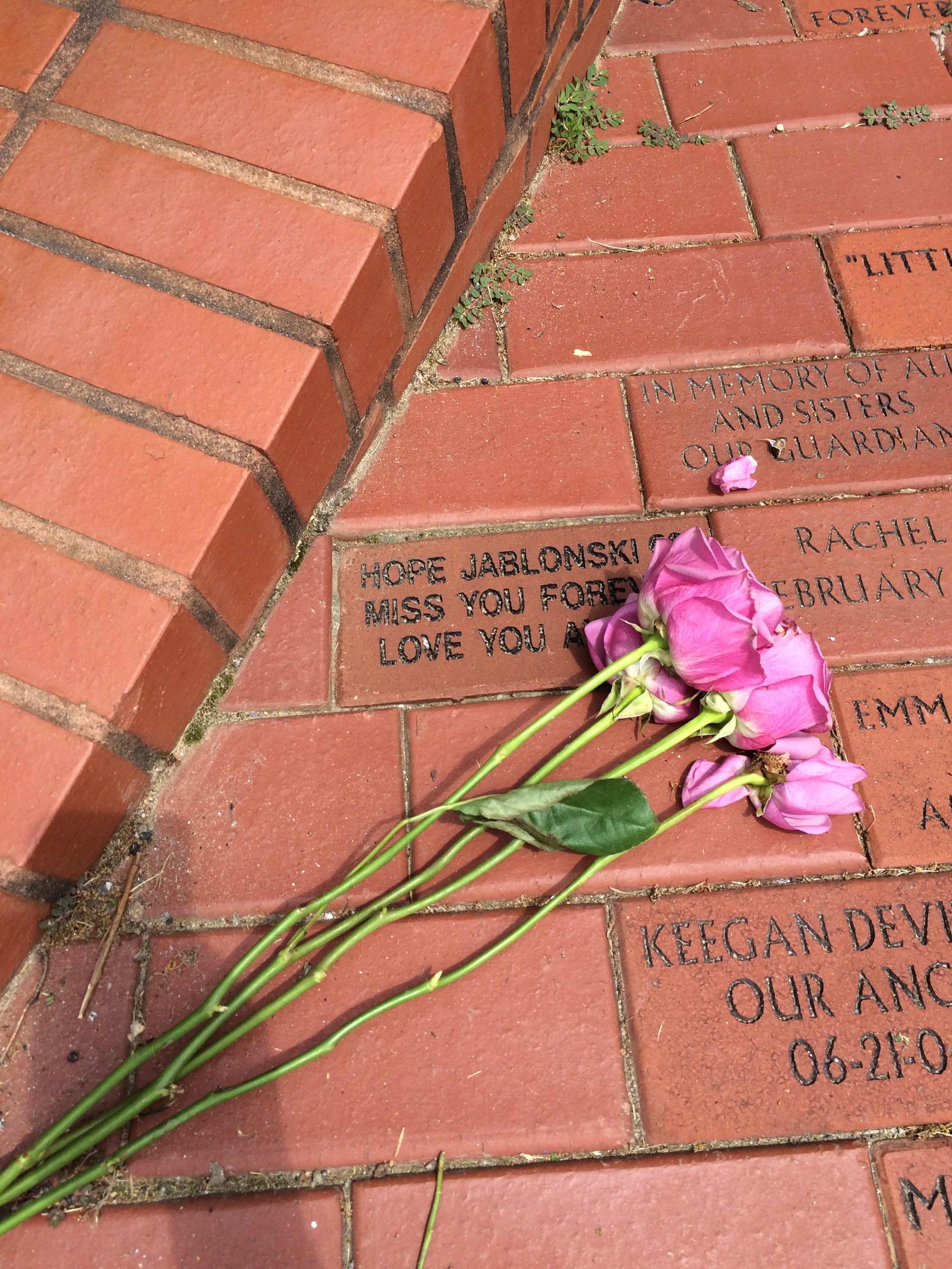 After we ate, we drove to the Angel Garden to visit Hope’s memorial brink and the beautiful Angel that looks over all the sweet babies that were gone too soon. It is sad and sweet and beautiful all at once. We are so thankful that we have an actual place to go when we need one. We know she is with Jesus, my dad, and even our sweet Yankee kitty, but an actual physical location that will always honor her life does so much for our hearts.